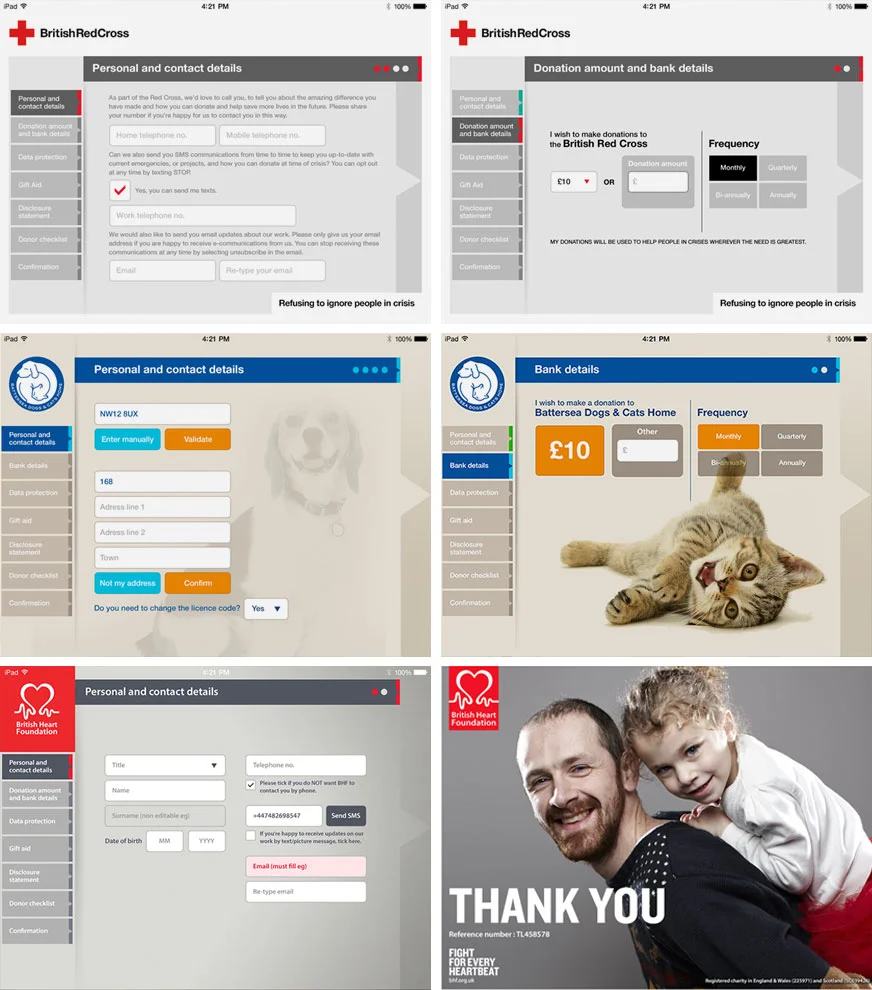 Once agreed, the charity shares their brand guideline and I manage the first setup, showing them a mockup of the final product. Its like dressing the structure. The first 2 slides show the concept of the campaign while the agent also explain how it works and how they get paid, then it comes the form.